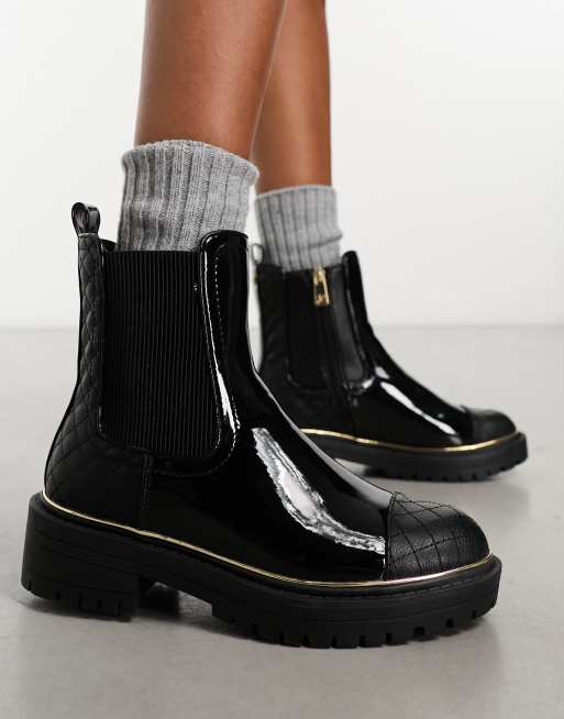 Black faux croc metal 2025 trim chunky chelsea boots