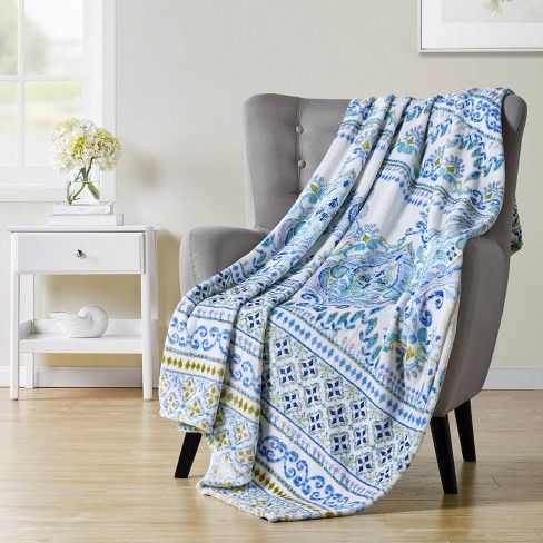 Teal and 2025 cream throw blanket
