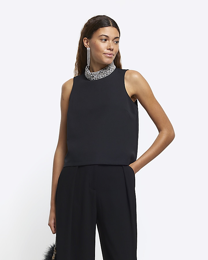 River island 2025 black diamante hoodie