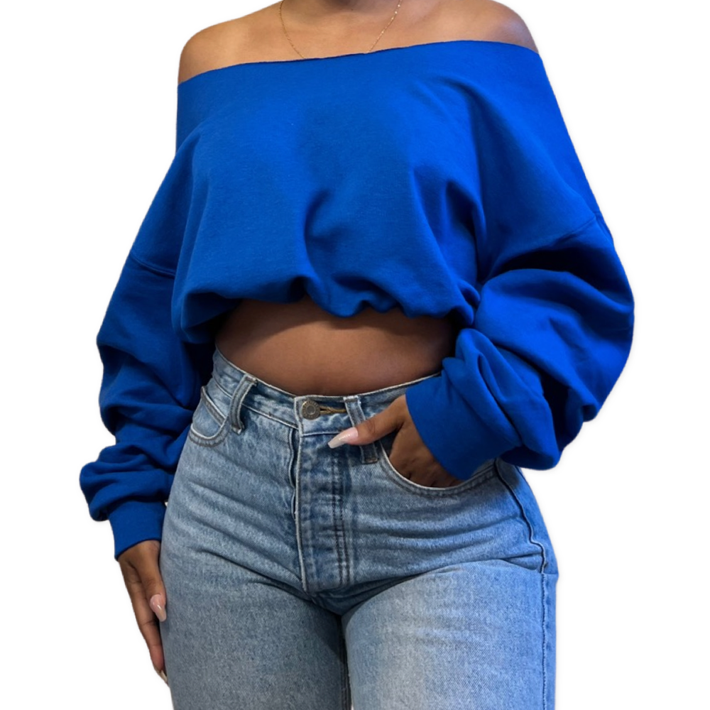 Product Item: Off the shoulder 2025 zip up cropped sweatshir